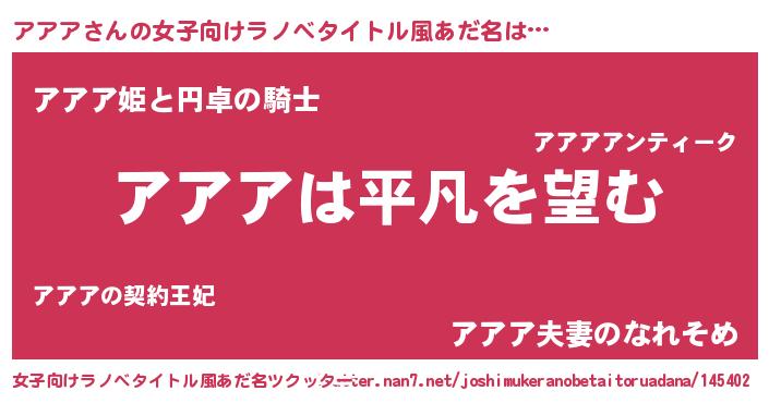 | ヒーロー風カッコイイあだ名 | 『黄金騎士アア』『スーパーアアア』 |
