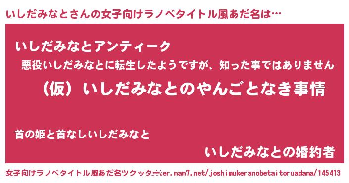 | 胡散臭い通販商品みたいなあだ名 | 『必ず成功するブレスレット…その名も「いしだみなと」』 |