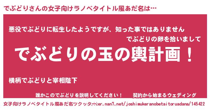 | 男性向けラノベタイトル風あだ名 | 『でぶどり~年齢イコール彼女いない歴の魔法使い~』 |