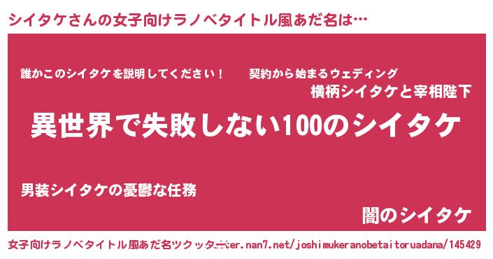 | ヒーロー風カッコイイあだ名 | 『ネオシイタケ』『スーパーシイタケ』 |