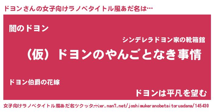 | 胡散臭い通販商品みたいなあだ名 | 『必ず成功する水晶球…その名も「ドヨン」』 |