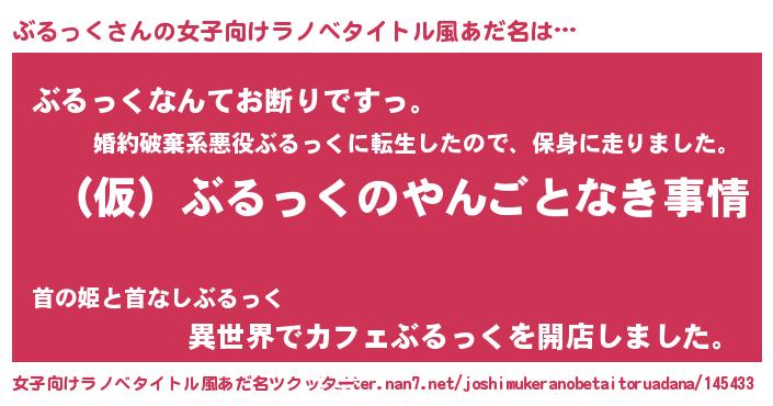 | 恥ずかしいあだ名 | 『プリティーぶるっく』『ぶるちん』 |