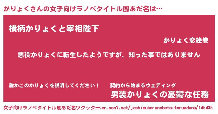 | 胡散臭い通販商品みたいなあだ名 | 『あなたにだけ特別に提供する100年もののヴィンテージワイン…その名も「かりょく」』 |