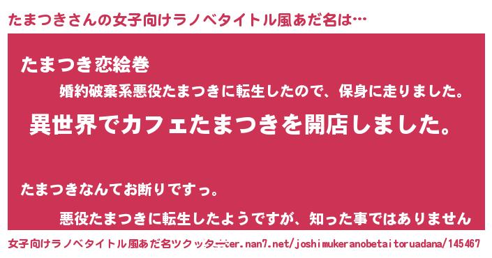 | 男性向けラノベタイトル風あだ名 | 『誰もが恐れるあのたまつきが、ぼくの専属メイドになるようです。』 |