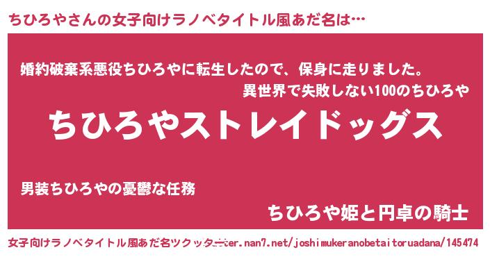 | ヘコむあだ名 | 『ちひふぇ~』『ちひろや(遠い目)』 |