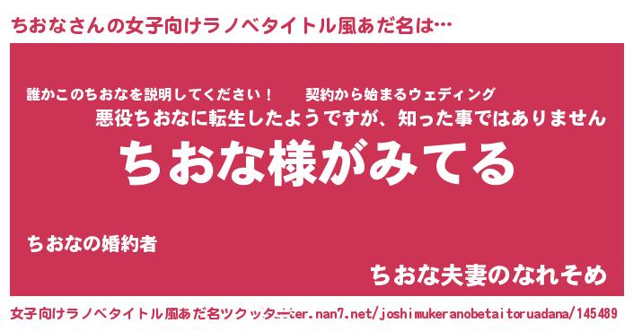 | 男性向けラノベタイトル風あだ名 | 『ちおなの嫁は女の子じゃないと思った?』 |