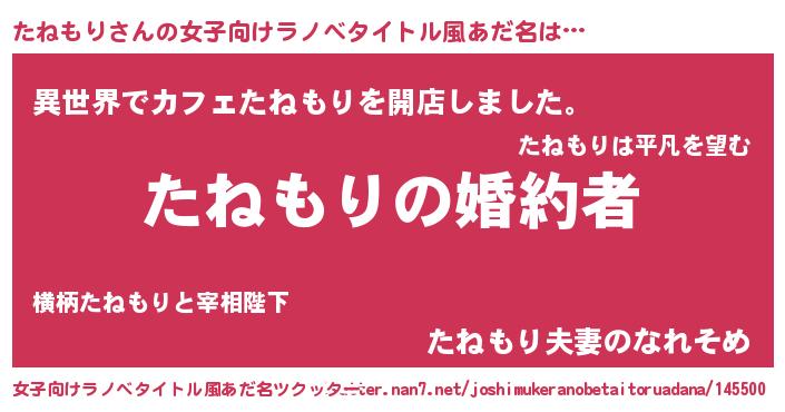 | ファンタジー風あだ名 | 『エターナルタネモリー』『クインタット』 |