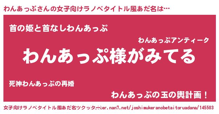 | ヘコむあだ名 | 『わんを』『わんあっぷ(小並感)』 |