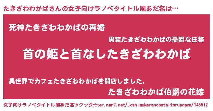 | 男性向けラノベタイトル風あだ名 | 『はたらくたきざわわかばさま!』 |