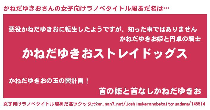 | 恥ずかしいあだ名 | 『カネダユキオデラックス』『かねっちょ』 |