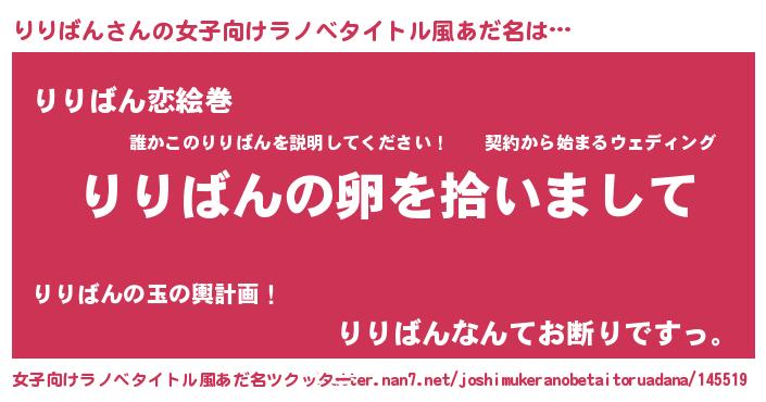 | 男性向けラノベタイトル風あだ名 | 『りりばんの嫁は女の子じゃないと思った?』 |