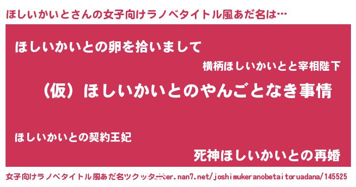 | 胡散臭い通販商品みたいなあだ名 | 『必ず成功するブレスレット…その名も「ほしいかいと」』 |