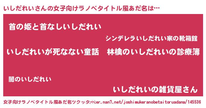 | 意味不明あだ名 | 『住所不定無職いしだれい(39歳)』 |