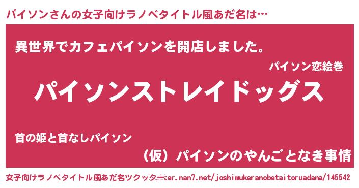 | ヘコむあだ名 | 『パイソン(笑)』『パイにゅー』 |