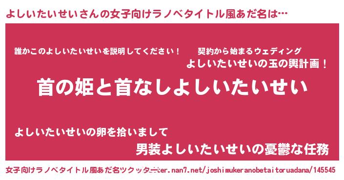 | 男性向けラノベタイトル風あだ名 | 『はたらくよしいたいせいさま!』 |
