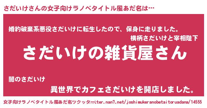 | 男性向けラノベタイトル風あだ名 | 『やはりさだいけの青春ラブコメはまちがっている 』 |