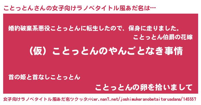 | 男性向けラノベタイトル風あだ名 | 『ことっとんの憂鬱』 |