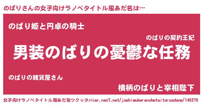 | ヘコむあだ名 | 『のばっふぃ~』『のばり(遠い目)』 |