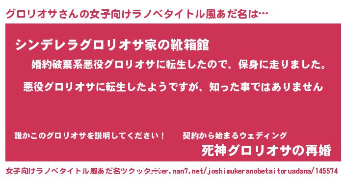 | 男性向けラノベタイトル風あだ名 | 『この素晴らしい世界にグロリオサを!』 |