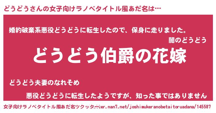 | 男性向けラノベタイトル風あだ名 | 『やはりどうどうの青春ラブコメはまちがっている 』 |