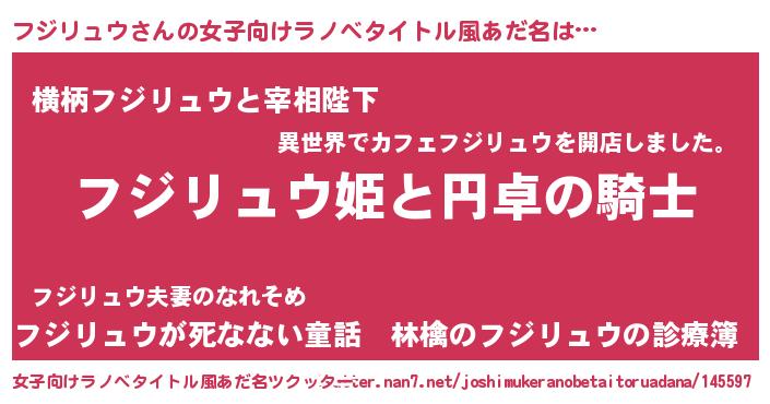| 男性向けラノベタイトル風あだ名 | 『フジリュウの憂鬱』 |