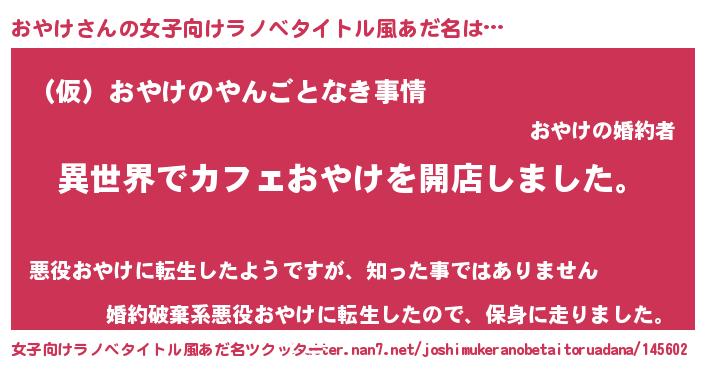 | 男性向けラノベタイトル風あだ名 | 『誰もが恐れるあのおやけが、ぼくの専属メイドになるようです。』 |