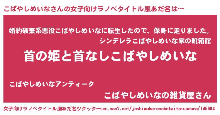 | 胡散臭い通販商品みたいなあだ名 | 『幸せが訪れる高級そうな壺…その名も「こばやしめいな」』 |
