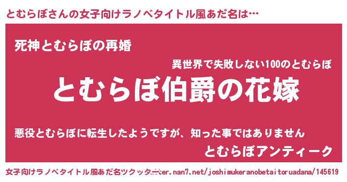 | 男性向けラノベタイトル風あだ名 | 『やはりとむらぼの青春ラブコメはまちがっている 』 |
