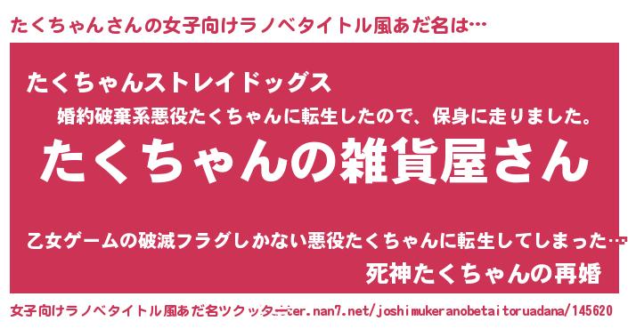 | ファンタジー風あだ名 | 『エターナルタクチャンー』『ゼタクトゥ』 |