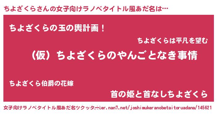 | 男性向けラノベタイトル風あだ名 | 『ちよざくらの憂鬱』 |