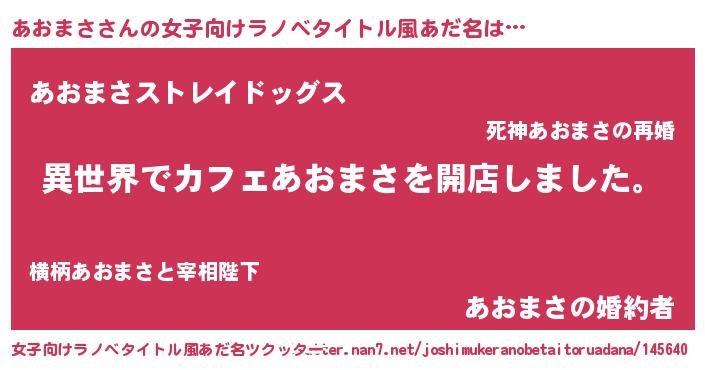 | ファンタジー風あだ名 | 『アオディッシュ』『ゼアオトゥ』 |