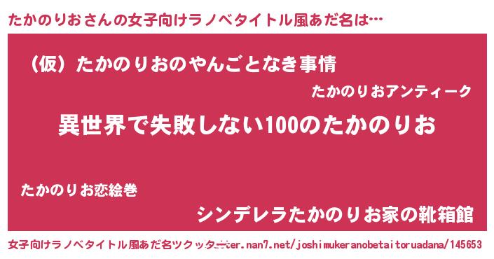 | 意味不明あだ名 | 『永久保存たかのりお』『自称たかのりお』 |