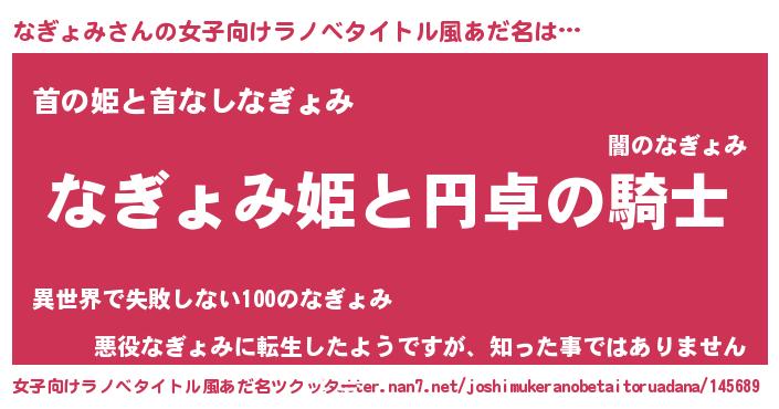 | 男性向けラノベタイトル風あだ名 | 『なぎょみの憂鬱』 |
