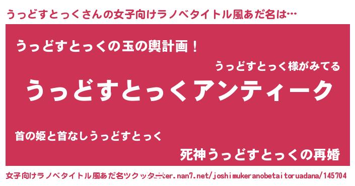 | 意味不明あだ名 | 『自称うっどすとっく』 |