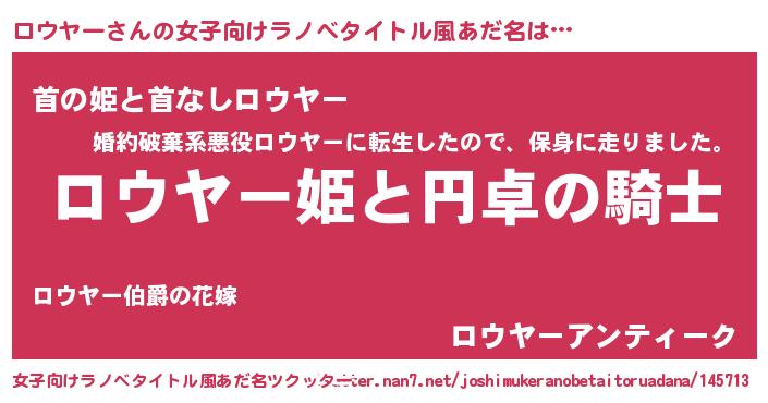 | ファンタジー風あだ名 | 『ロウフェル』『ゼロウトゥ』 |