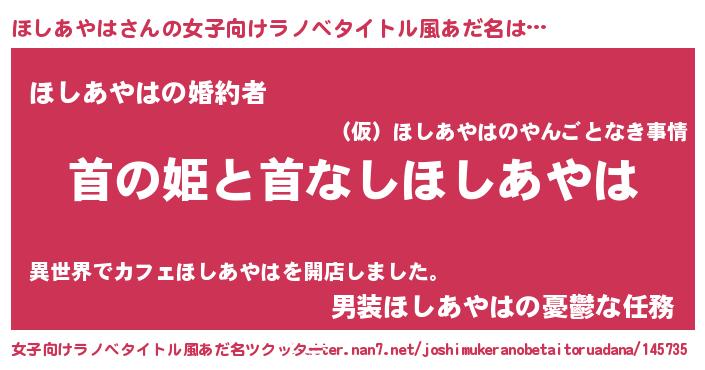 | 胡散臭い通販商品みたいなあだ名 | 『世界が平和になる高級そうな絵画…その名も「ほしあやは」』 |