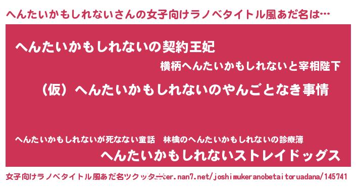 | 男性向けラノベタイトル風あだ名 | 『へんたいかもしれないの憂鬱』 |