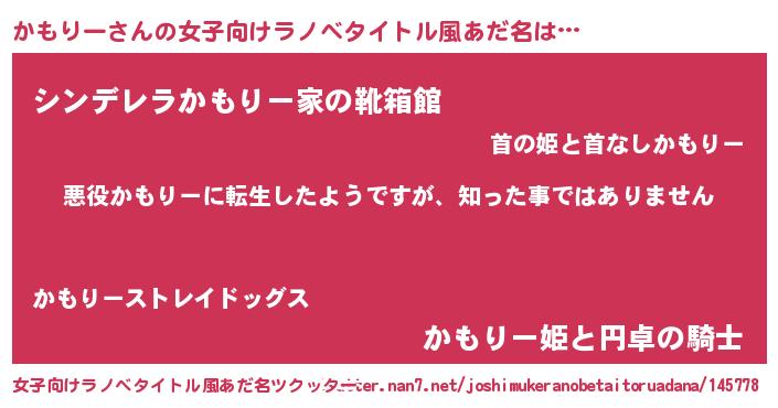| 男性向けラノベタイトル風あだ名 | 『この素晴らしい世界にかもりーを!』 |