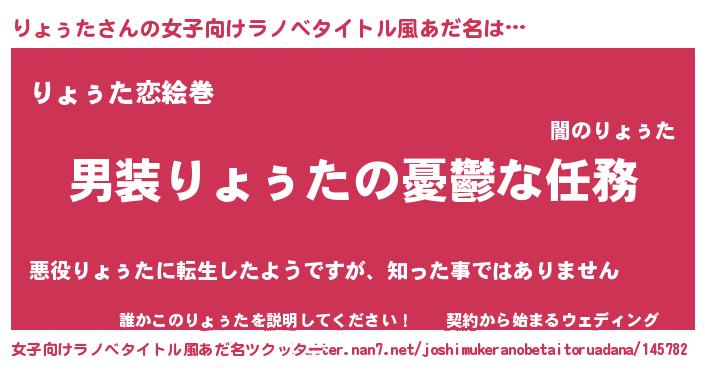 | 男性向けラノベタイトル風あだ名 | 『うちのりょぅたが世界を掌握している!』 |