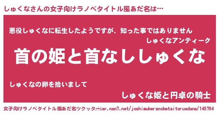 | 意味不明あだ名 | 『住所不定無職しゅくな(93歳)』 |