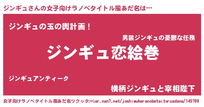 | 男性向けラノベタイトル風あだ名 | 『ノーゲーム・ノージンギュ』 |