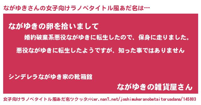 | 胡散臭い通販商品みたいなあだ名 | 『あなたにだけ特別に提供する100年もののヴィンテージワイン…その名も「ながゆき」』 |