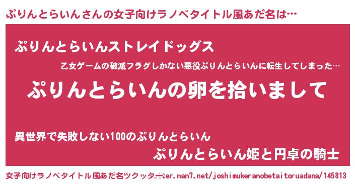 | 意味不明あだ名 | 『とにかく怪しいぷりんとらいん』 |