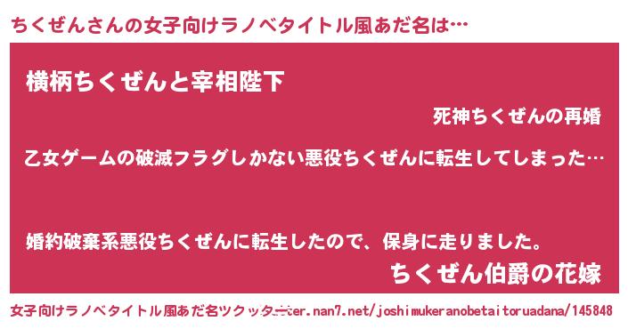 | 男性向けラノベタイトル風あだ名 | 『魔弾の王とちくぜん』 |