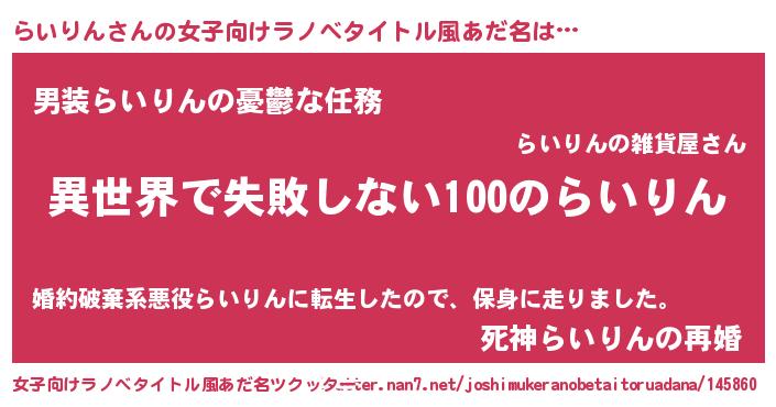 | 男性向けラノベタイトル風あだ名 | 『らいりんという概念が存在しない退屈な世界 』 |