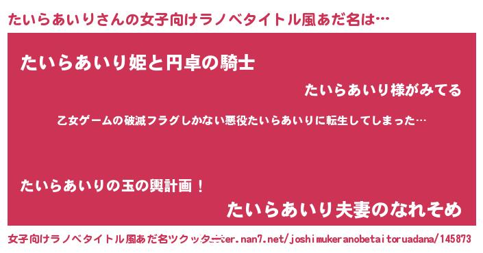 | 男性向けラノベタイトル風あだ名 | 『魔弾の王とたいらあいり』 |