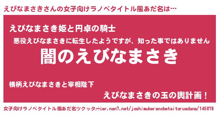 | 男性向けラノベタイトル風あだ名 | 『Re:えびなまさきから始める異世界生活』 |
