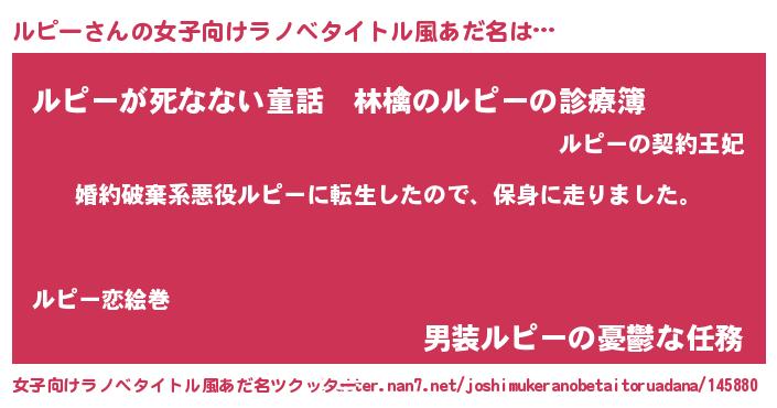 | 男性向けラノベタイトル風あだ名 | 『転生したらルピーだった件』 |