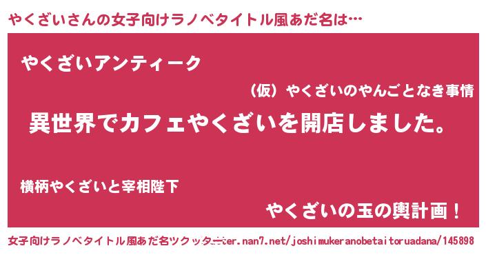 | 男性向けラノベタイトル風あだ名 | 『誰もが恐れるあのやくざいが、ぼくの専属メイドになるようです。』 |