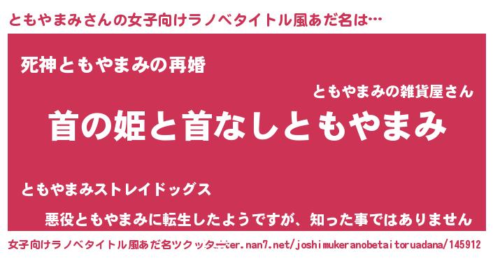 | 男性向けラノベタイトル風あだ名 | 『はたらくともやまみさま!』 |